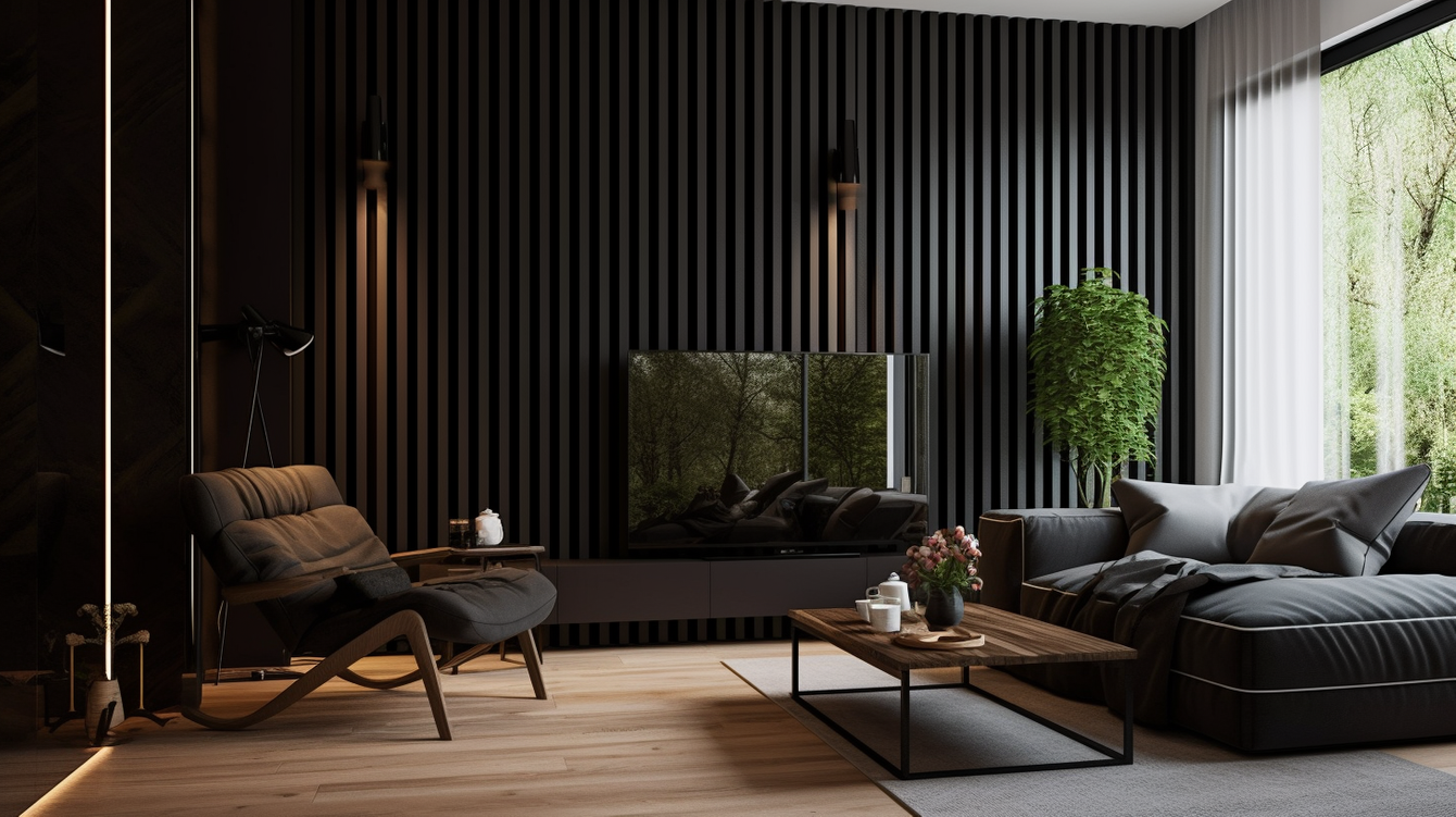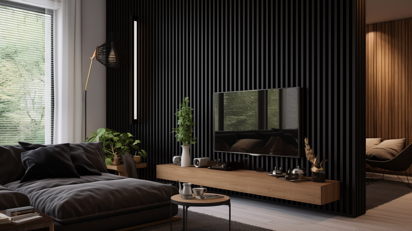 Čierna - 3D lišty Premium - Dekoratívne akustické vertikálne stenové panely