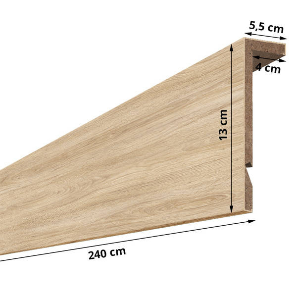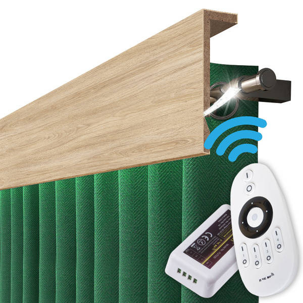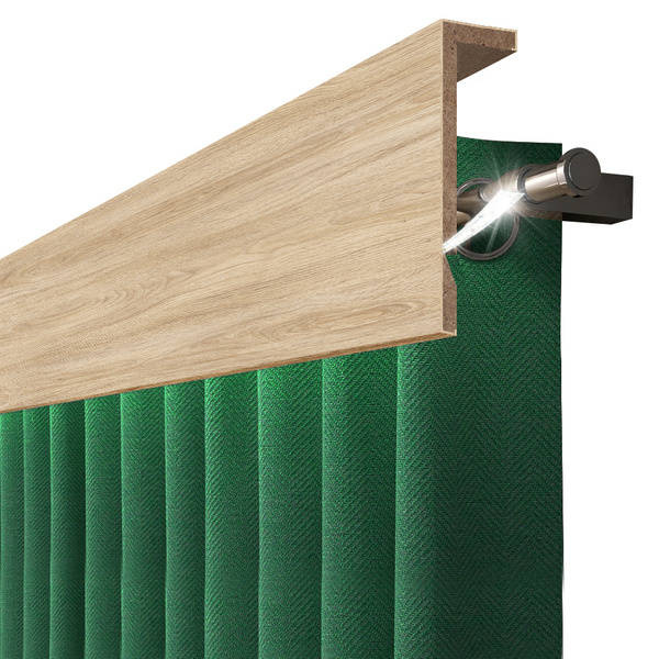 Dekoratívny kryt záclonovej tyče - sada so svetlom - prírodný dub Fornitury