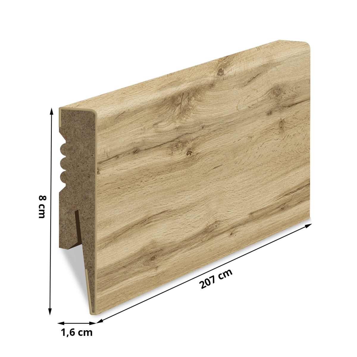 Lišta je dekoratívny prvok, ktorý sa umiestňuje medzi stenu a podlahu. Veľká dĺžka soklovej lišty, 207 cm, umožňuje rýchlu a efektívnu montáž s minimom spojov. Lišty z MDF sú na trhu s dokončovacími materiálmi obľúbené vďaka svojej dostupnej cene a dobrej kvalite. Soklové lišty sú ideálne na inštaláciu v byte alebo v kancelárskych priestoroch. Najobľúbenejšie sú biele soklové lišty. Farebné soklové lišty, napríklad čierne, sivé alebo antracitové, dodávajú interiéru eleganciu a charakter. Na druhej strane, soklové lišty v prírodných farbách dreva dodávajú interiéru teplý a originálny dojem. Soklové lišty vo farbe duba často tvoria harmonický celok s nábytkom a dverami. Lišta zabezpečuje kompletný interiér, preto sa jej výberu prikladá veľký význam.