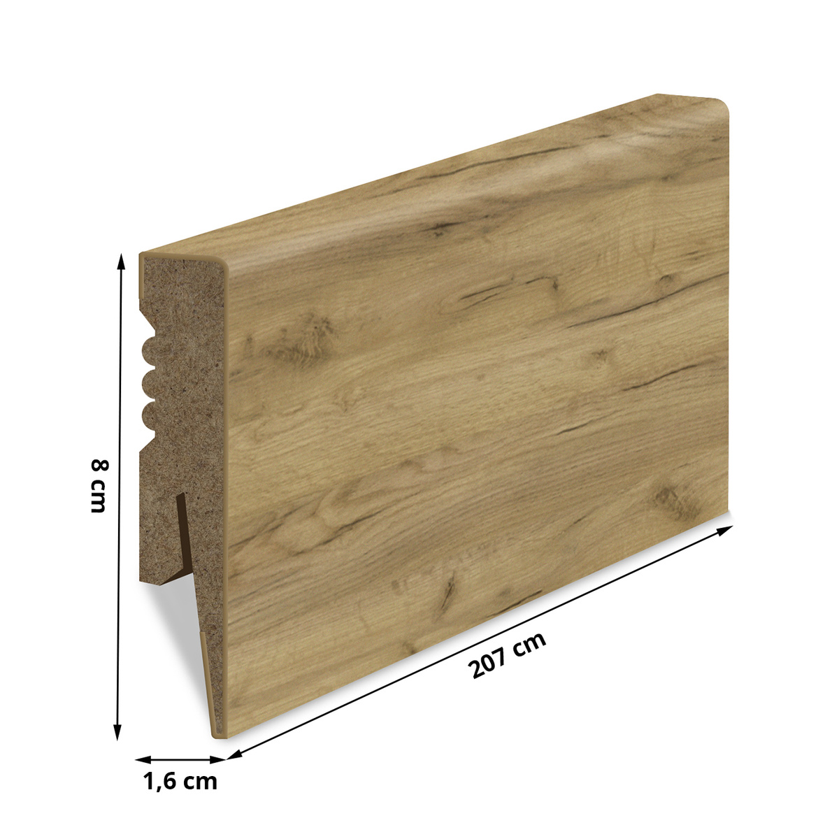 - Vzhľadom na možnosť poškodenia hrán soklových líšt počas prepravy sa soklové lišty neformátujú. Preto ku každej soklovej lište pridávame 7 cm zadarmo. Okraje lišt si musíte orezávať sami.