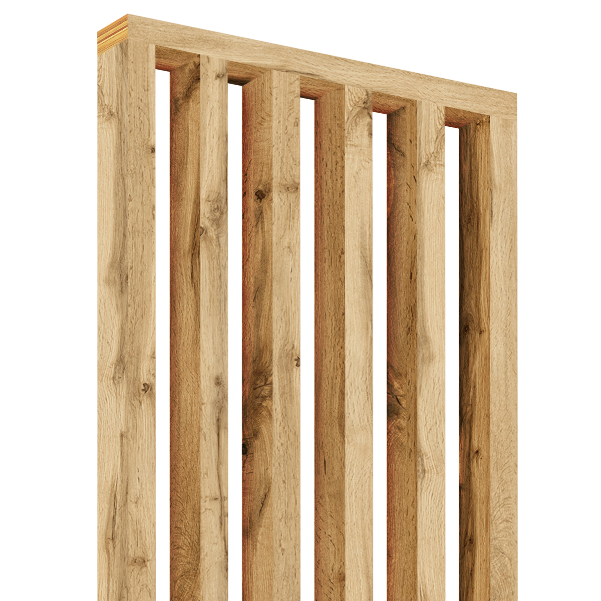 - Lamel przepierzeniowy, z widoczną z 4 stron okleiną. Lamel nadaje się na przepierzenie pomieszczenia, oddzielenie części pokoju lub stworzenie ażurowego wykończenia wnętrza