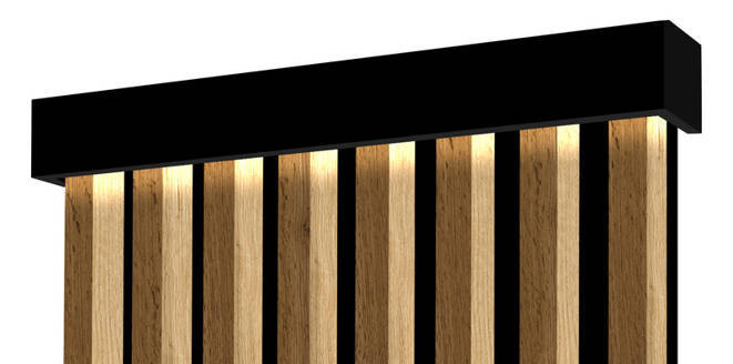 - Dekoratívny prvok nášho najpredávanejšieho výrobku - lamely na taniere. Závesná tyč s frézovaním pre LED pásik umožňuje pomocou osvetlenia zvýrazniť charakter lamiel umiestnených na doske.