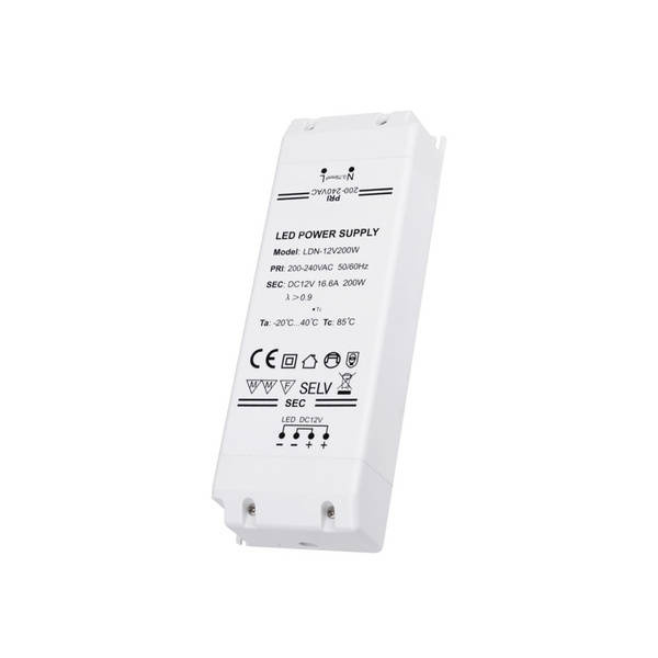Napájací zdroj pre LED STANDARD PLUS s výkonom 200 W je moderný a bezpečný napájací zdroj, ktorý zaručuje správnu a bezporuchovú prevádzku LED osvetlenia po mnoho rokov. Je napájaný striedavým napätím 200-240 V~50/60 Hz. Výstupné napätie znižuje na 12 V DC. Je uzavretý v izolačnom plastovom puzdre bielej farby.
