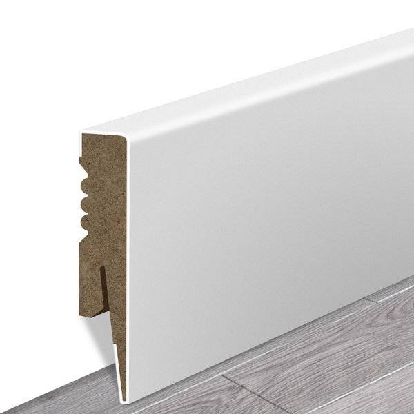 Ukončenie soklovej lišty slúži na zakrytie MDF materiálu a na estetické zdobenie koncov soklových líšt. Vyrába sa z dyhy, ktorá sa pred montážou soklových líšt privarí k okraju.